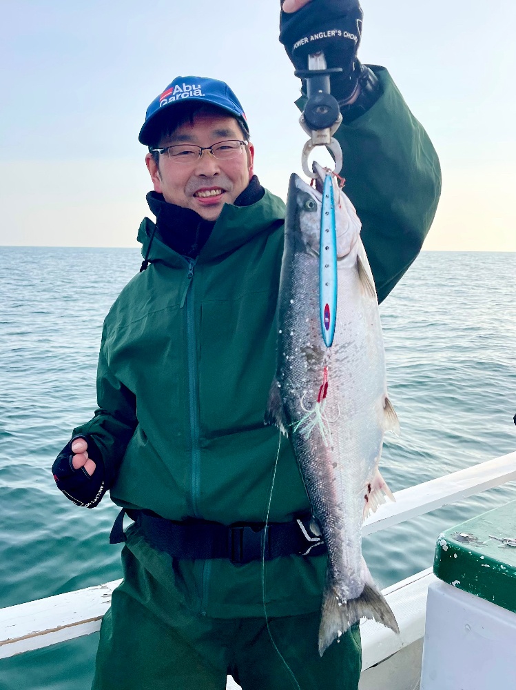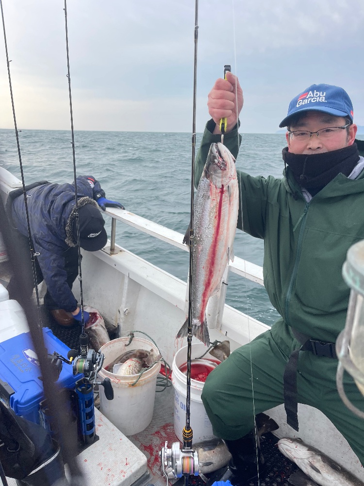 サクラマス、タラジギング狙いでしたがすぐに強風になる予報でやれて2時間程度でしたので、中止も検討しましたが、少しでもやりたいとのことで出撃!